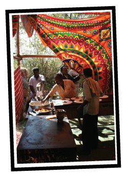 Dinner: Served with fragrant basmati rice, daal, sabji, raita, roti, kachumber, papadum & dessert.